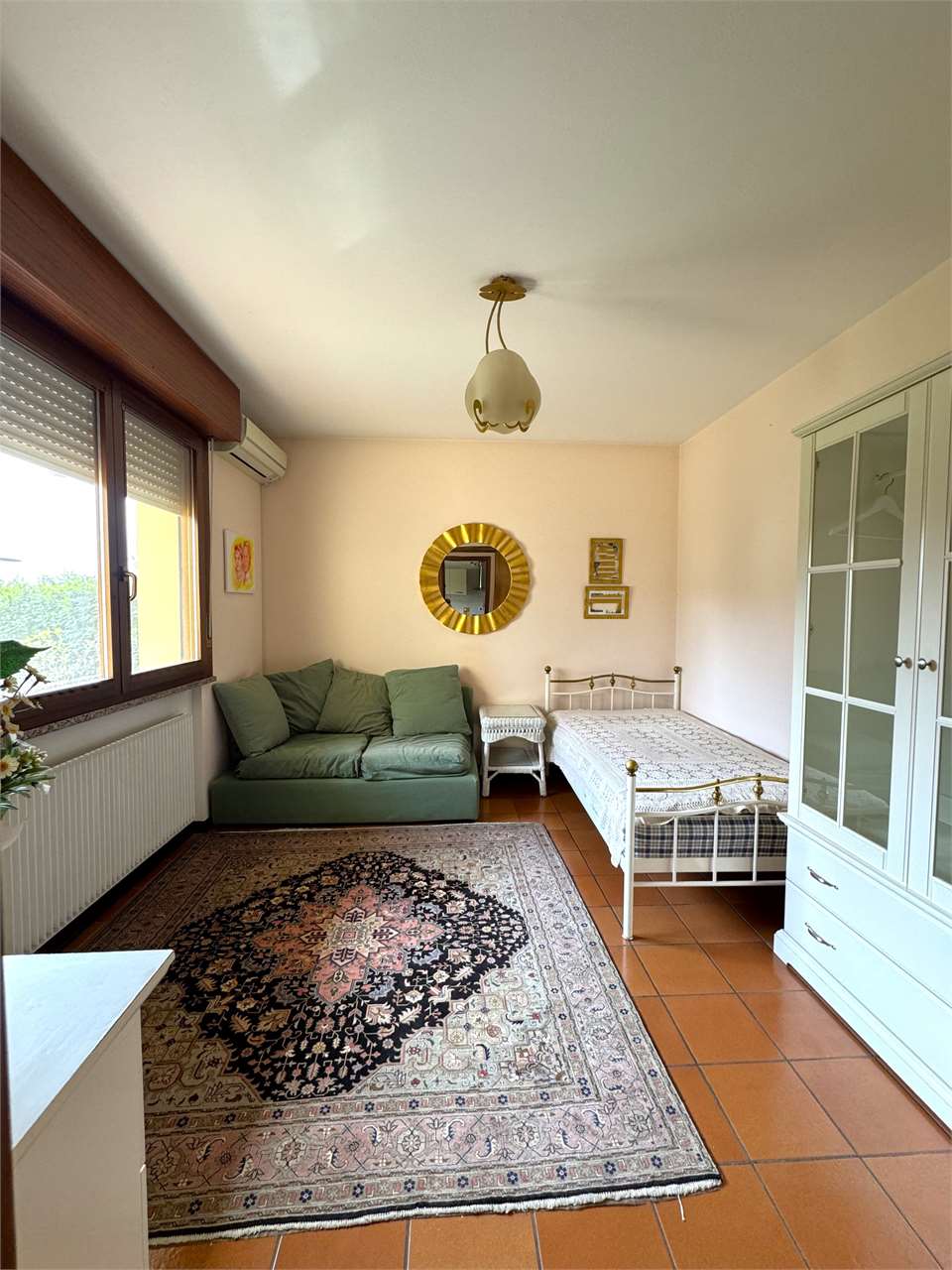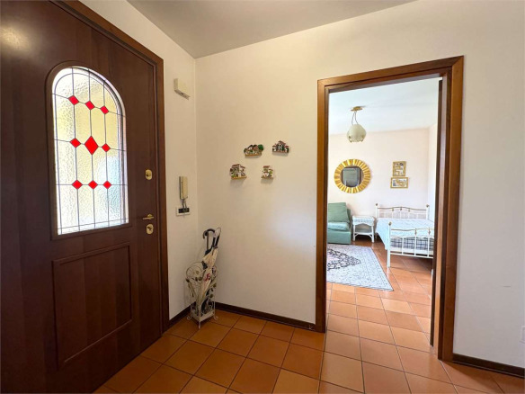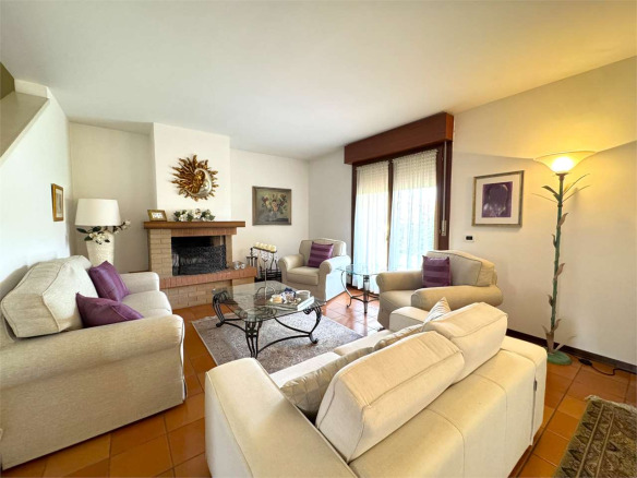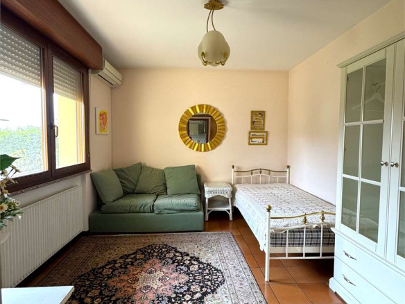 L’ingresso dell’abitazione conduce a un elegante e accogliente soggiorno, arricchito da caminetto che crea un’atmosfera calda e familiare. Da qui, gli ambienti si aprono su un comodo portico, ideale per trascorrere piacevoli cene estive all’aperto o per godersi momenti di relax immersi nella tranquillità del curato giardino privato. La cucina abitabile, spaziosa e funzionale, è collegata a un bagno di servizio. Il piano terra è completato da una camera/studio, perfetta come zona lavoro o stanza che si può adattare a diverse esigenze.